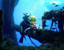 - Corte submarino de obstrucciones para instalación de abrazaderas guías de ductos submarinos.
